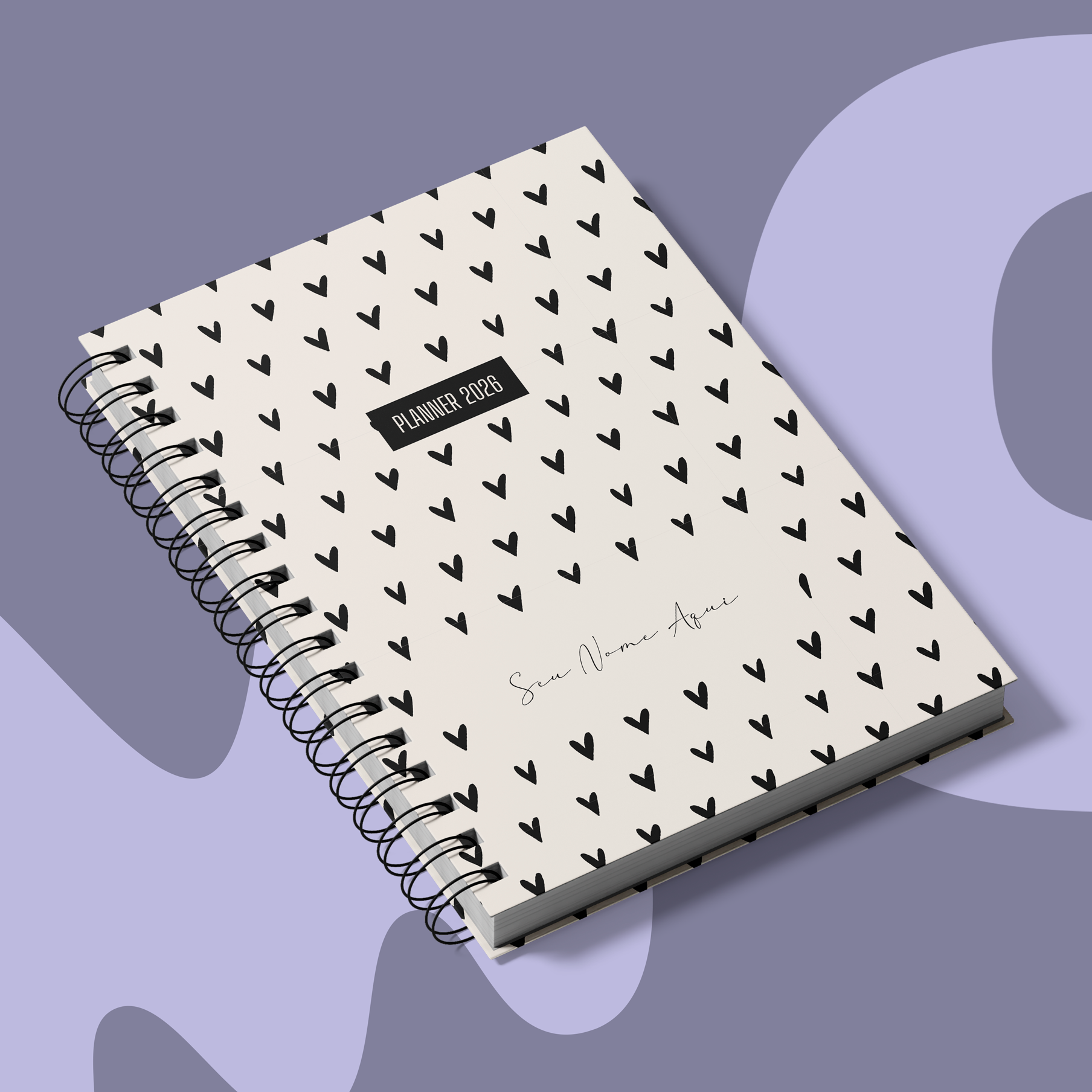 Conheça o Planner 2026 Personalizado, ideal para organizar seus compromissos com estilo e praticidade. Com capa moderna com padrões em preto e off white, este planner oferece personalização exclusiva com seu nome, garantindo um toque único. Seu formato espiral facilita o manuseio e a consulta rápida das páginas internas, que contam com layouts cuidadosamente distribuídos para anotações diárias, mensais e espaços para metas. A qualidade do papel é excelente, proporcionando uma escrita suave sem manchas, perfeito para canetas e lápis. Além disso, o design compacto torna-o ideal para uso pessoal em casa, no trabalho ou na escola.